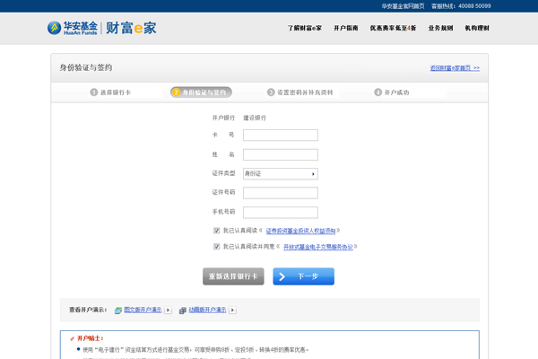2、進入華安基金首頁(http://m.czlongchang.com/),點擊“快速開戶”;