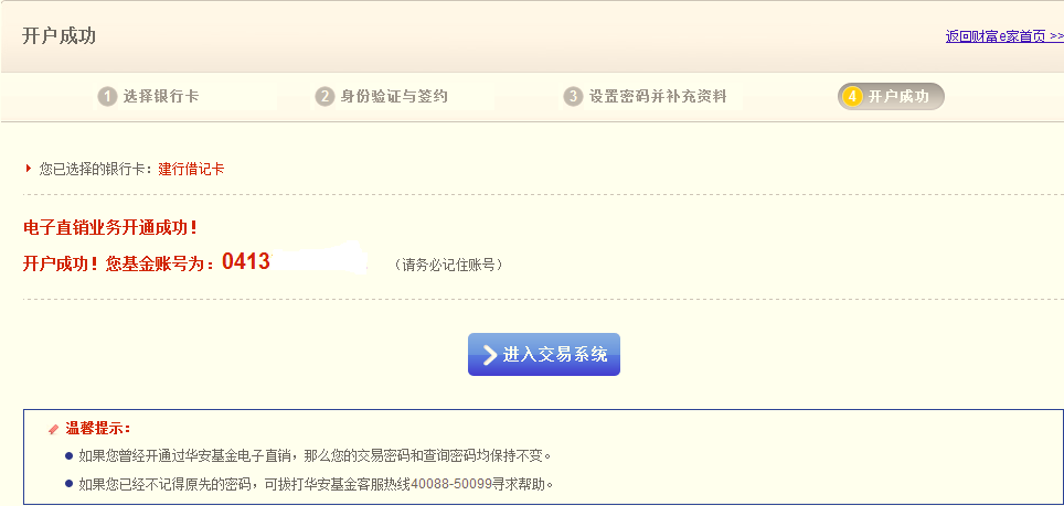 7. 生成基金帳號,開戶成功;