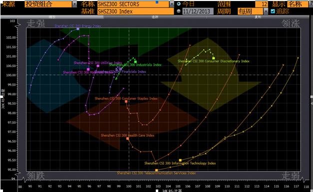 3. 行業輪動圖在中國這樣的非成熟市場的意義要大于成熟市場。