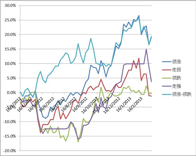 一個標準的行業輪動過程應該是從走強、領漲、走弱到領跌,但是實際上這種過程可能存在各種變化,的確存在著證券逆襲的不規則情形。