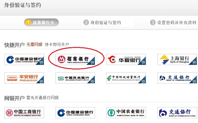 2. 點擊“快捷開戶-招商銀行”圖標進入;