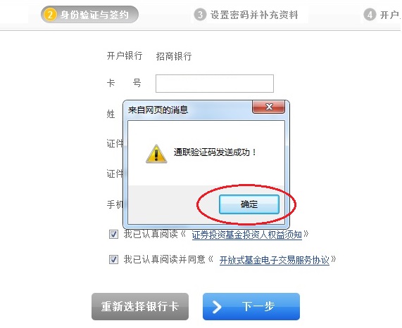4.利用在銀行預留的手機號碼,進行身份驗證,驗證成功后進入下一步 ;
