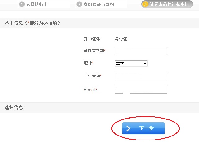 5.驗證成功,繼續下一步,設置密碼并補充資料;