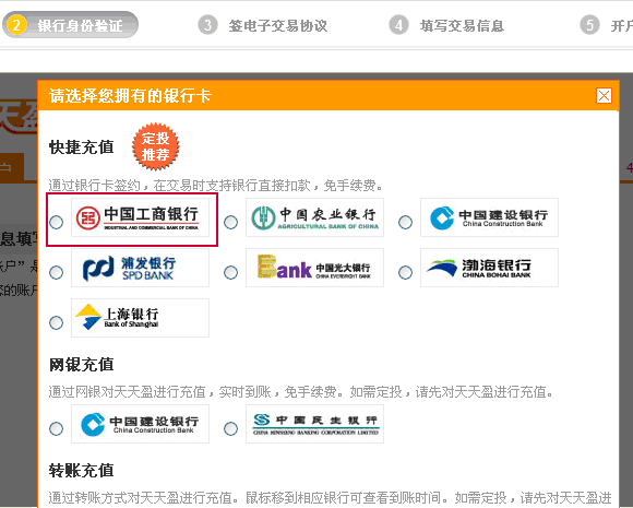 5、以快捷充值中的“中國工商銀行”為例;