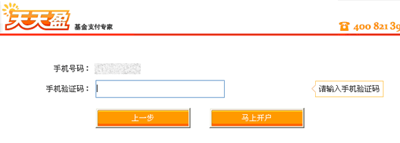 7、正確回填手機驗證碼,然后點擊“馬上開戶”按鈕,即可成功完全天天盈賬戶開戶;