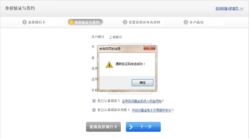 4. 利用在銀行預留的手機號碼,進行身份驗證,驗證成功后進入下一步 ;