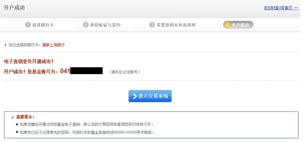 1. 登錄華安基金網站首頁m.czlongchang.com,在首頁的右上方處點擊"快速開戶" ;