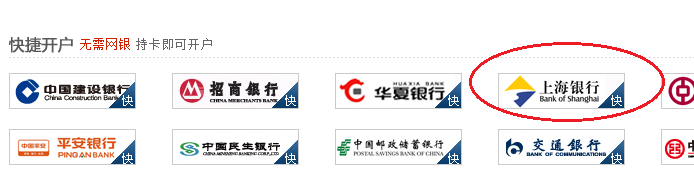 2. 點擊“快捷開戶—上海銀行”圖標進入;