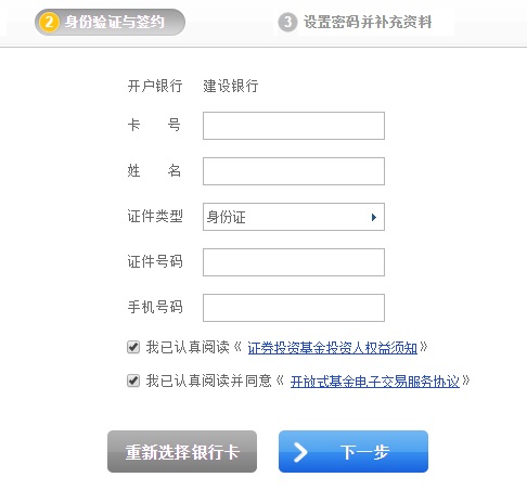 7、返回華安網站后,點擊“下一步”;在線簽署《華安基金管理有限公司開放式基金電子交易服務協議》,客戶閱讀該協議后,勾選“本人同意上述協議中的所有內容”,然后點擊“下一步”按鈕;