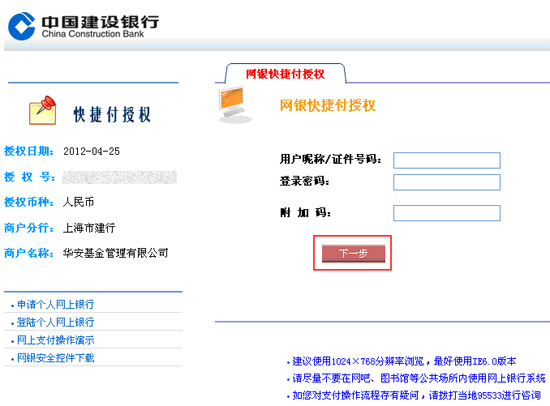 a) 進行網銀登錄身份驗證(需選擇“網銀快捷付”);