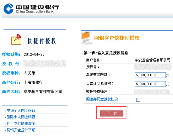 6、此時瀏覽器會自動打開建行的“e付通”簽約頁面,客戶需要根據頁面提示進行“e付通”簽約;