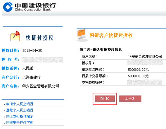 d) 輸入網銀“交易密碼”并點擊“授權”;