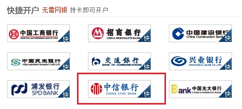 2.  點擊“快捷開戶-中信銀行”圖標進入;