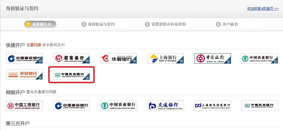 2. 點擊“快捷開戶-中國民生銀行”圖標進入;