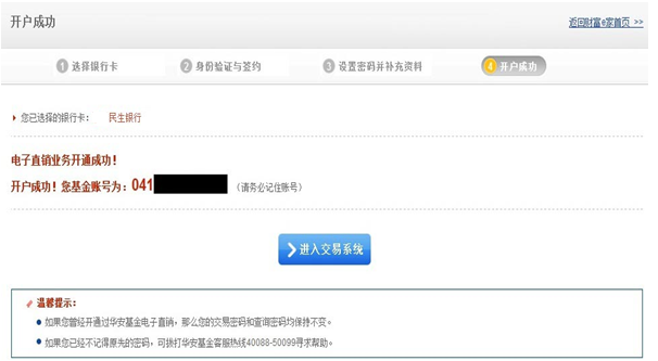 1. 登錄華安基金網站首頁m.czlongchang.com,在首頁的右上方處點擊"快速開戶" ;