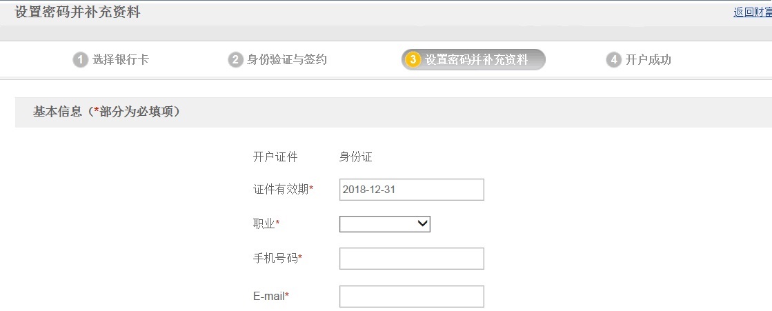 5.驗證成功,繼續下一步,設置密碼并補充資料;