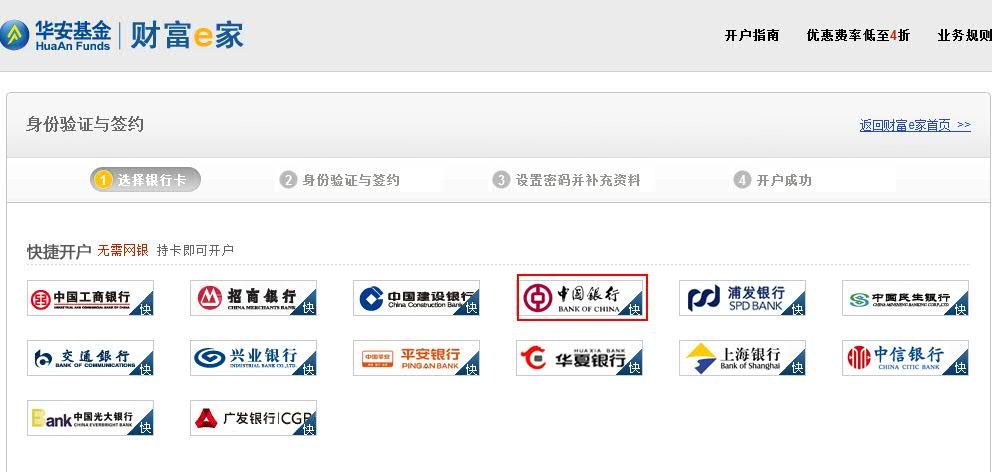 2. 點擊“快捷開戶-中國銀行”圖標進入;