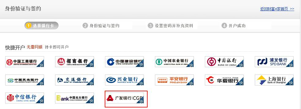 2.  點擊“快捷開戶-廣發銀行”圖標進入;