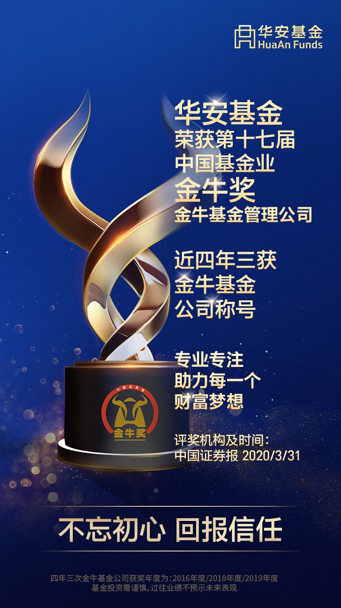 華安基金董事長朱學華認為,“金牛獎”既是榮譽,也是鞭策。面對行業激烈競爭,公司選擇切實回歸受托理財的行業本源,秉承“守正、專業、傳承、創新”的品牌精神,嚴格堅守合規經營底線,以專業創造財富,以創新引領發展。