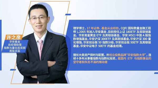 風險提示:本視頻中涉及的觀點和判斷,僅代表當前時點的看法,基于市場環境的不確定性和多變性,所涉觀點和判斷后續可能發生調整或變化,本內容僅用于溝通交流之目的,供您參考,不構成任何投資建議?;鹩酗L險,投資須謹慎。基金產品收益具有波動性,我國基金運作時間較短,不能反映股市發展的所有階段?;鸸芾砉静槐WC基金一定盈利,也不保證最低收益。基金的過往業績并不預示其未來表現,基金管理人管理的其他基金的業績亦不構成新基金業績表現的保證。由第三方專業機構出具的業績證明并不能替代基金托管人的業績復核函?;鸸芾砣颂嵝淹顿Y人:基金投資應當注意買者自付原則,投資人應當認真閱讀基金合同、招募說明書等基金法律文件,以詳細了解產品風險收益特征,根據自身能力審視決策,獨立承擔投資風險,直播中所涉材料及內容除特別注明外,版權歸華安基金所有,未經允許請勿轉發。