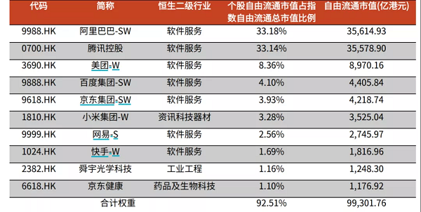 恒生科技指數前十大成分股一覽