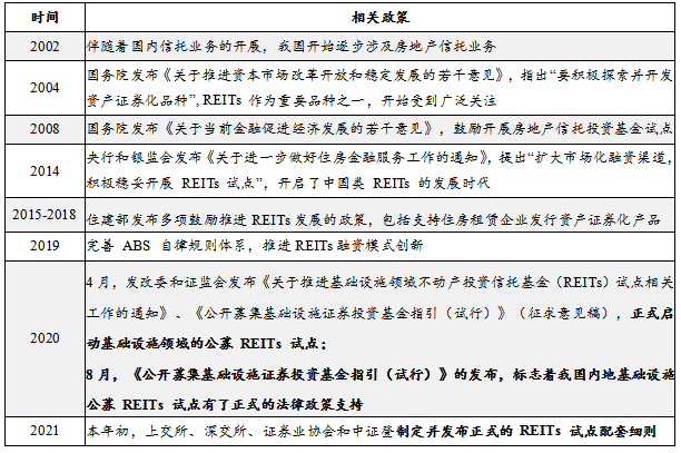 2020年4月證監會和發改委發布《關于推進基礎設施領域不動產投資信托基金(REITs)試點相關工作的通知》,同時發布《公開募集基礎設施證券投資基金指引(試行)》。這一階段中國REITs市場開始由私募的債務融資屬性的類REITs產品,開始轉向公募的權益融資屬性的公募REITs產品。