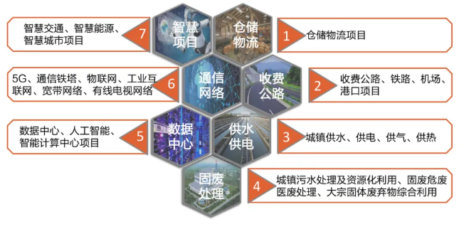 第一,聚焦重點行業。從行業看,優先支持基礎設施補短板、新型基礎設施、產業園區等領域項目,重點聚焦七大行業領域。我國公募REITs聚焦七大行業領域