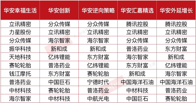 附表 崔瑩在管基金一季報前十大重倉股一覽