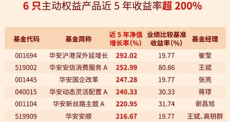 五年兩倍基的陣容也很強大,包括華安滬港深外延增長、華安安信消費服務、華安國企改革、華安動態靈活配置、華安新絲路主題、華安安順這六只產品。三年收益翻倍的產品更是多達28只,這些基金分別由22位基金經理管理,展示了華安基金強大的投研平臺的力量。