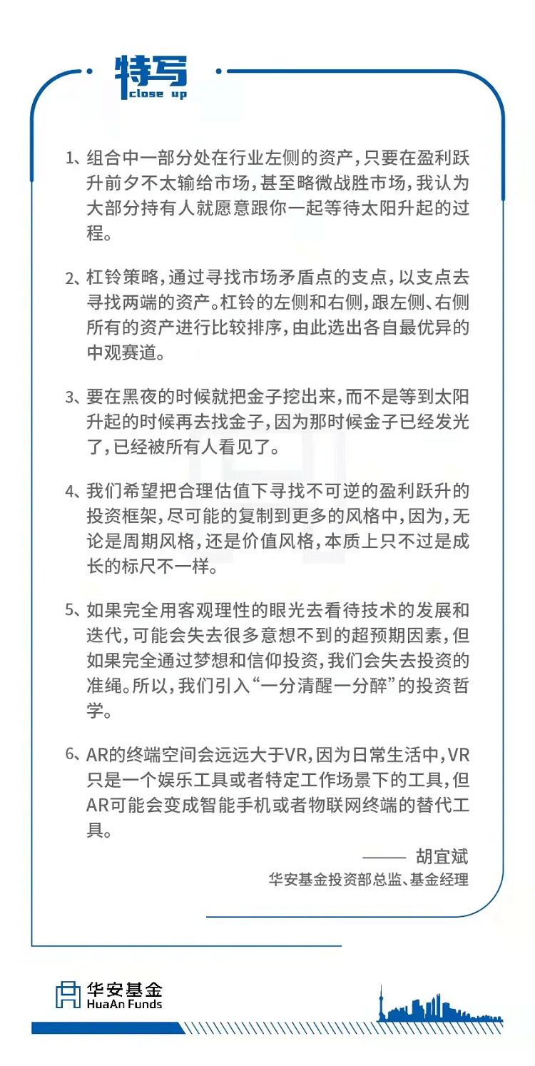 胡宜斌:我們曾經是一個偏成長風格的選手,我們擁有合理估值下尋找不可逆的盈利躍升的投資框架下,也積累了一定的勝率。