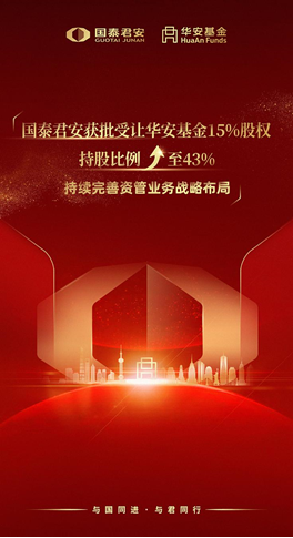 日前,中國證監會正式核準國泰君安證券受讓上海上國投資產管理有限公司持有的華安基金15%股權。至此,國泰君安證券持有華安基金的股權比例由28%上升至43%。