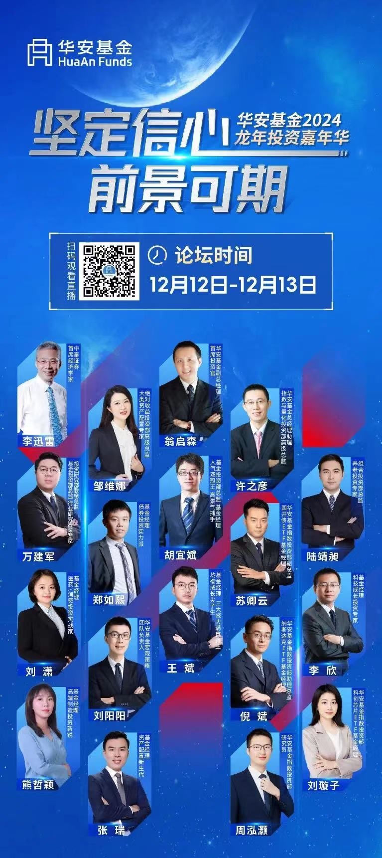 堅定信心,前景可期。12月13日,華安基金2024龍年投資嘉年華圓滿落幕。本次投資嘉年華邀請了多位業內重磅嘉賓,超30家平臺同步直播,備受市場關注。