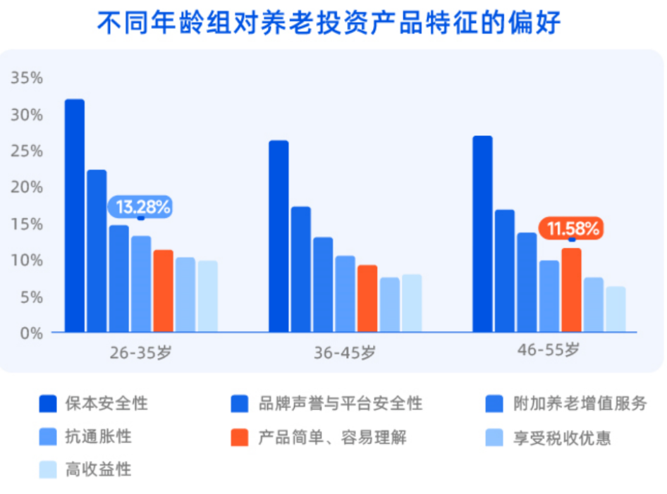 可以看出,26歲到35歲的年輕群體在保本安全性方面具有更明顯的偏好。