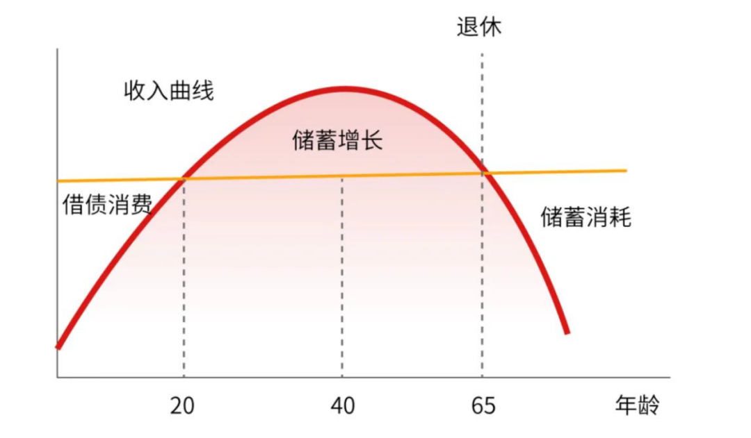 但年輕人有穩定的工作,未來收入會增加。因此,人們在年輕時往往會把收入中的很大一部分用于消費,甚至貸款消費,購買房屋、汽車等耐用品,這時候儲蓄很少甚至為零。