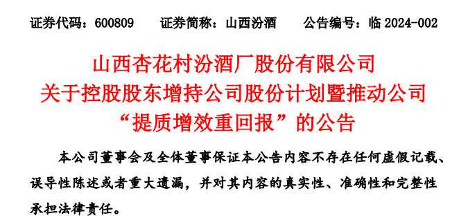 除增持外,山西汾酒稱將提質增效,促進主業發展;穩健分紅,重視投資回報;加強溝通,保持良性互動;強化治理,夯實權益保障。