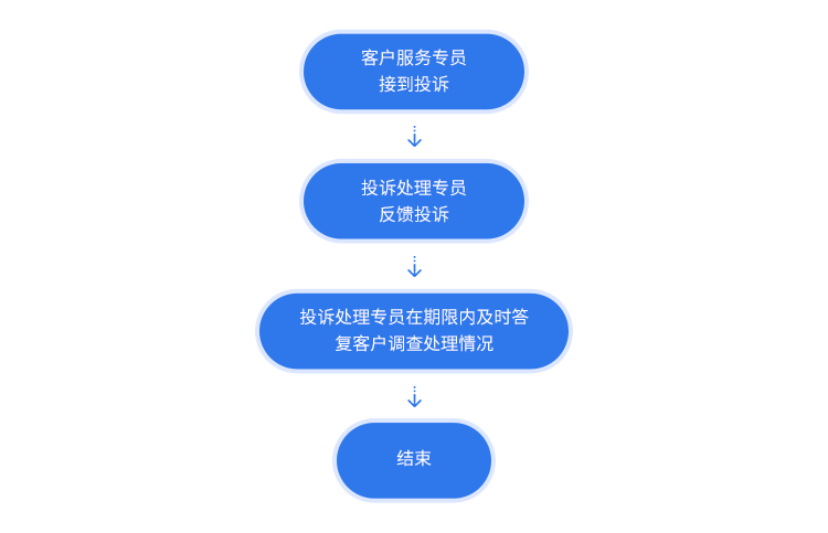 二、 客服投訴處理專員自收到投訴之日起3個工作日作出處理回復,情況復雜的,可以延長處理期限,但延長期限不得超過20日,并及時告示投訴人延長期限及理由。